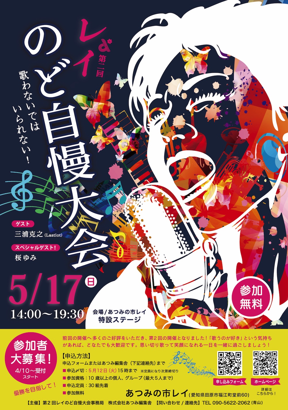 昨年開催した、あつみの市 レイ「のど自慢大会」へ多くのご好評をいただき、第2回の開催が決定しました!